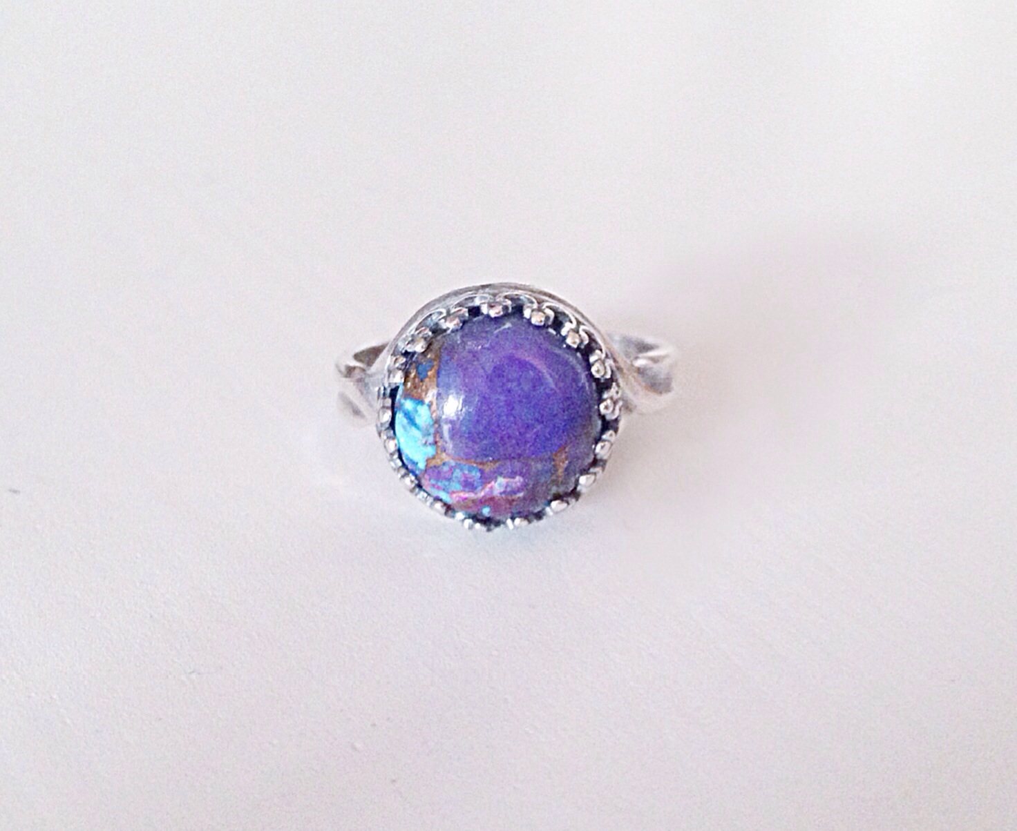 Round purple turquoise ring. • one of a long genuine gemstone • 10mmx10mm • 925 sterling silver