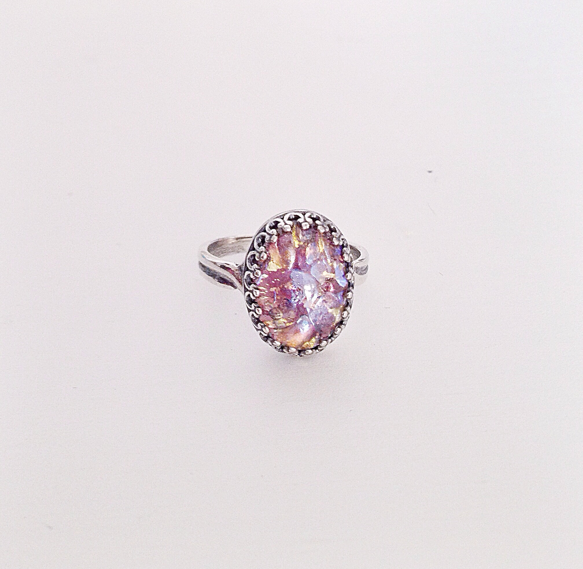 The "Amaelia" ring: Amethyst opal adjustable ring in 925 sterling silver, silver plated or gold plated. Stone measures 10X14mm.