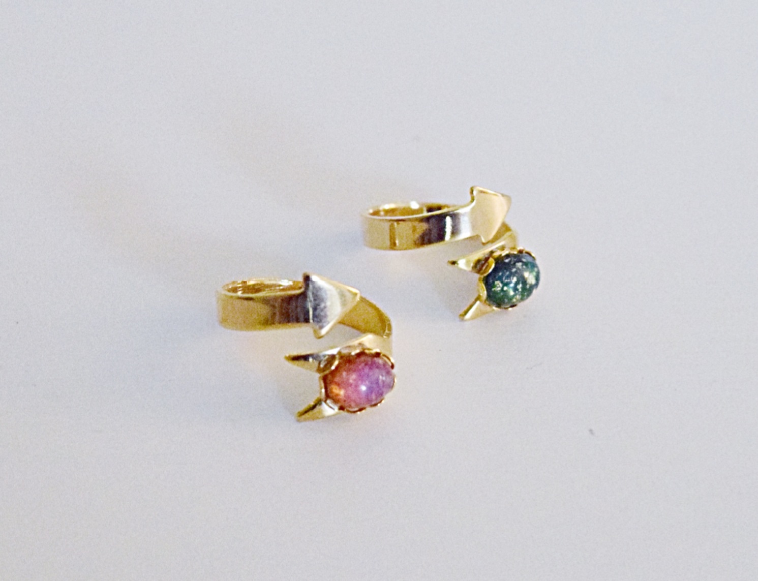 This gold plated ring is adjustable so you can even wear it as a thumb ring and it looks awesome! Available in green opal & harlequin opal.
