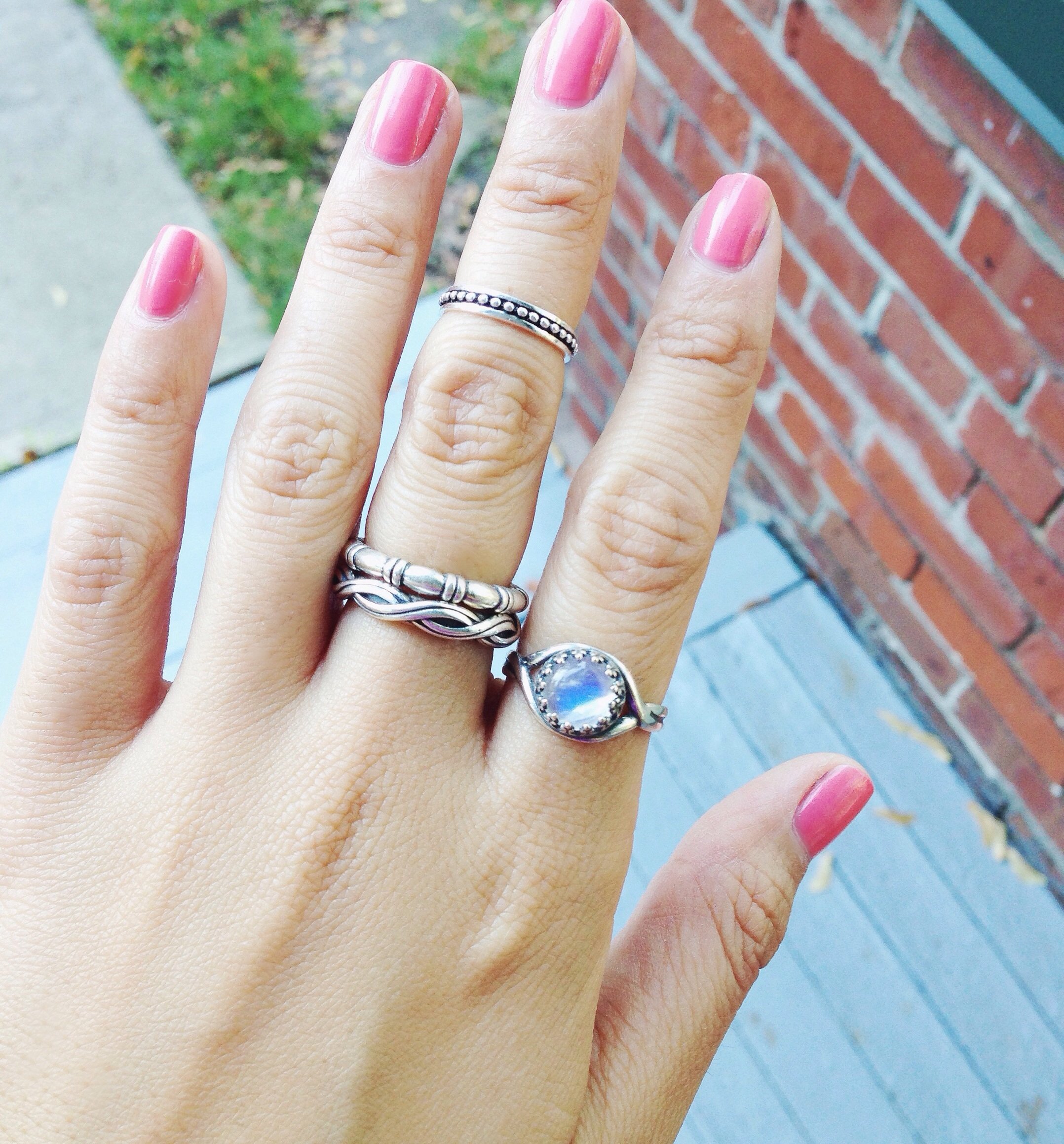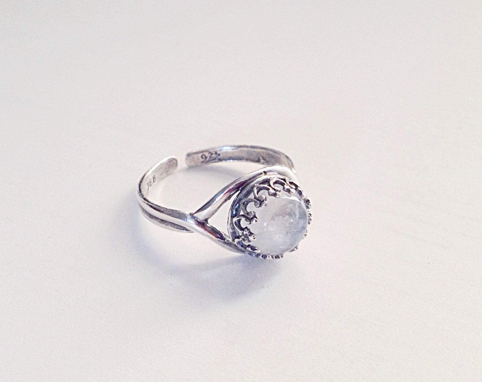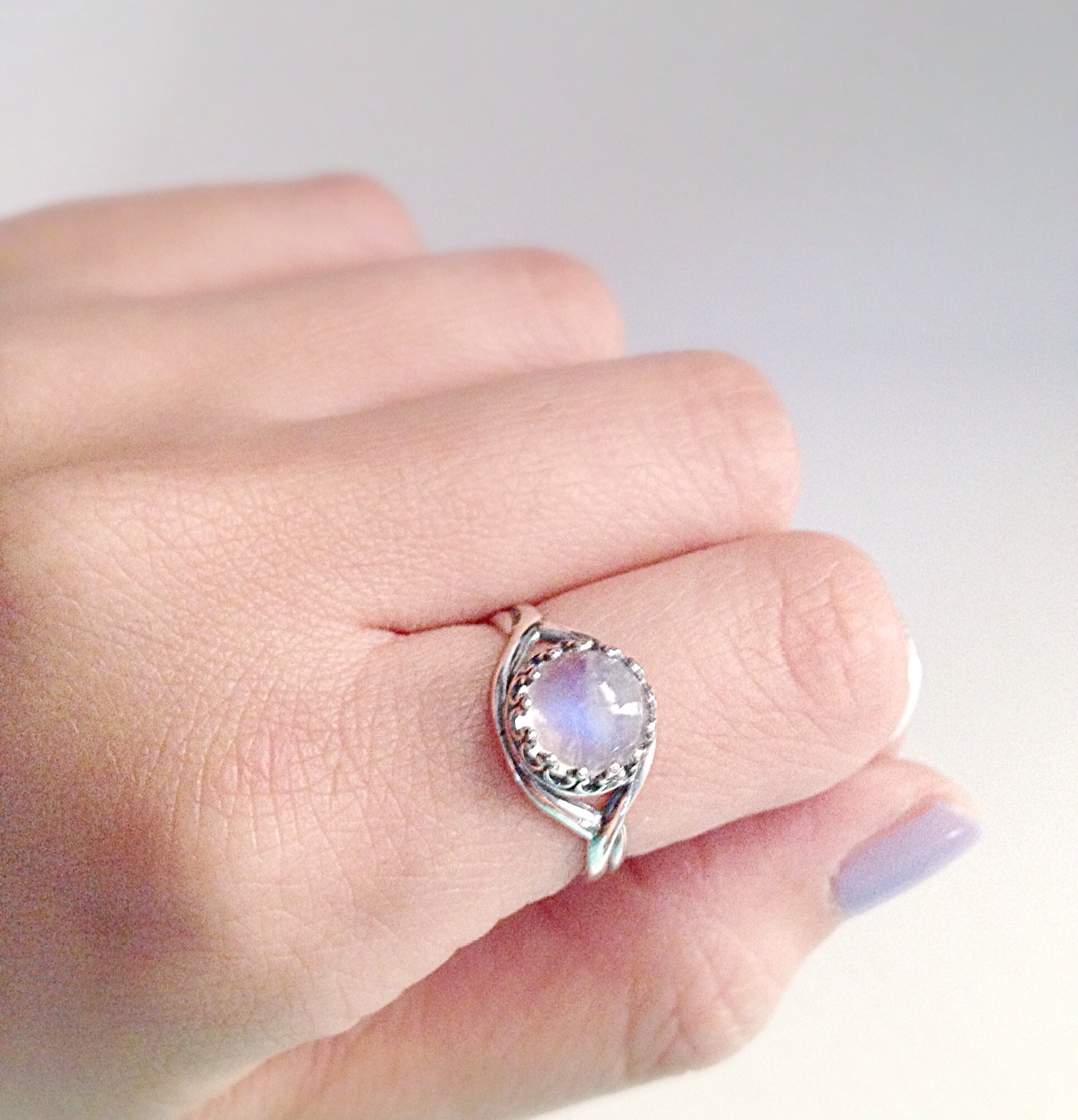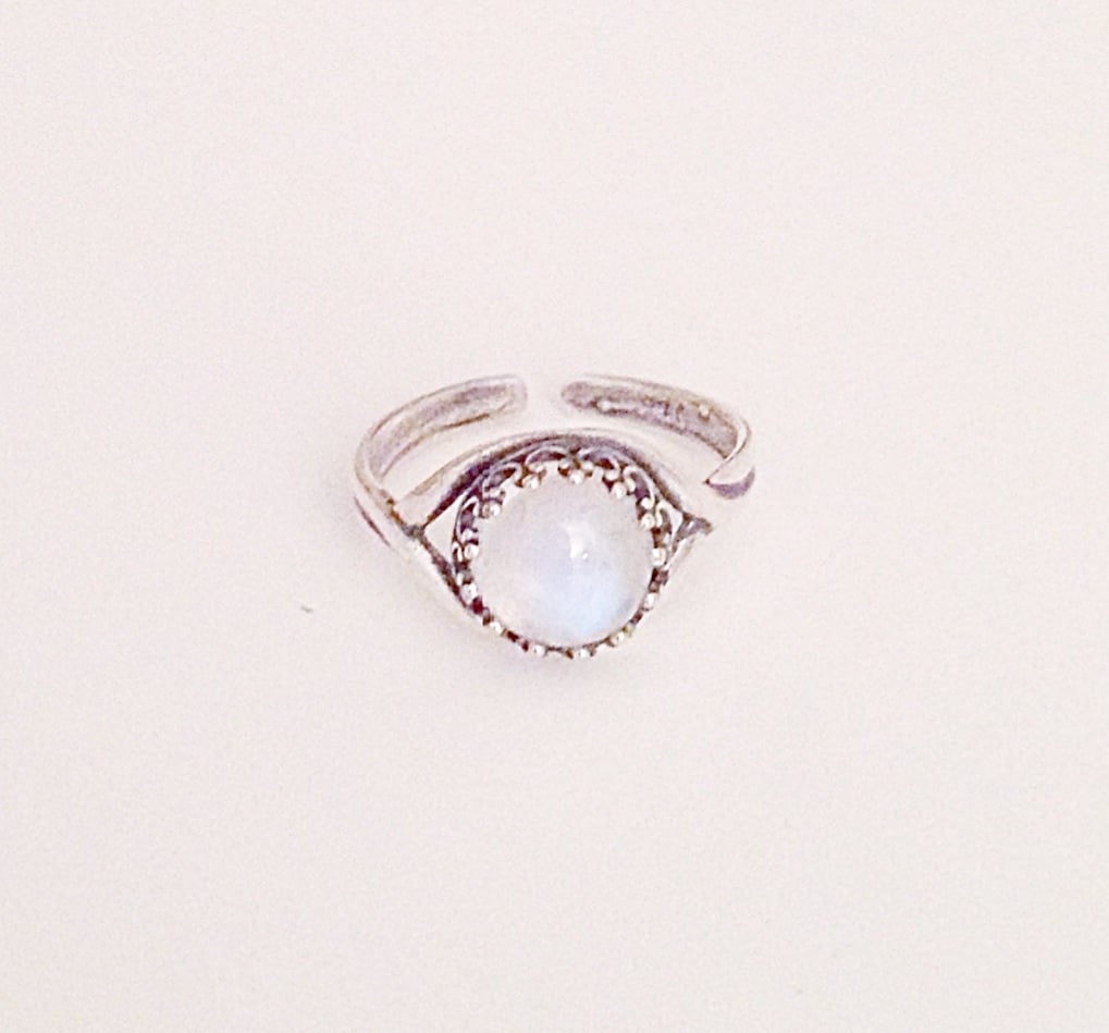 Mini rainbow moonstone ring • genuine AA quality moonstone • stone measures 8x8mm • adjustable ring • available in silver plated & 925 sterling silver