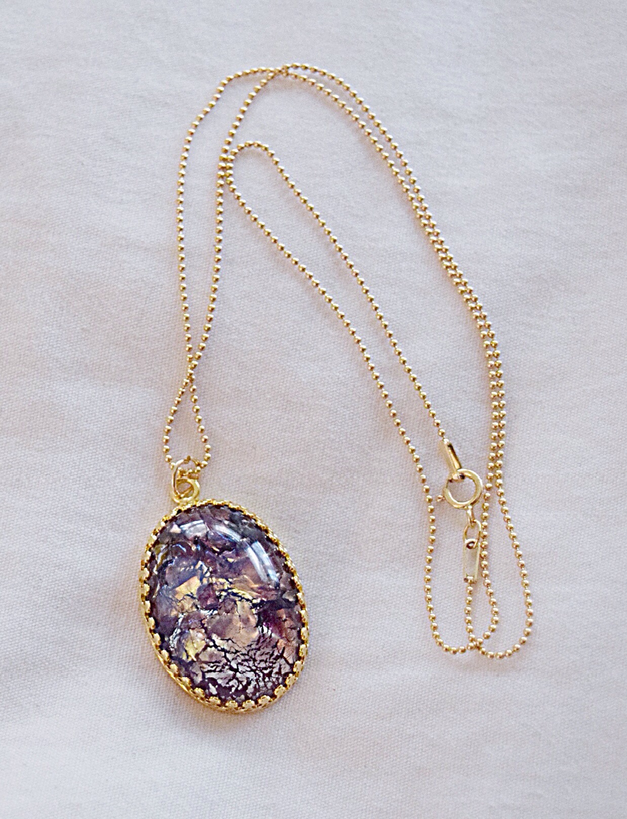 Vintage light amethyst opal pendant: • available on a 18" 14kt gold filled ball chain in gold plated & 18" & 30" 925 sterling silver ball chain in sterling silver.