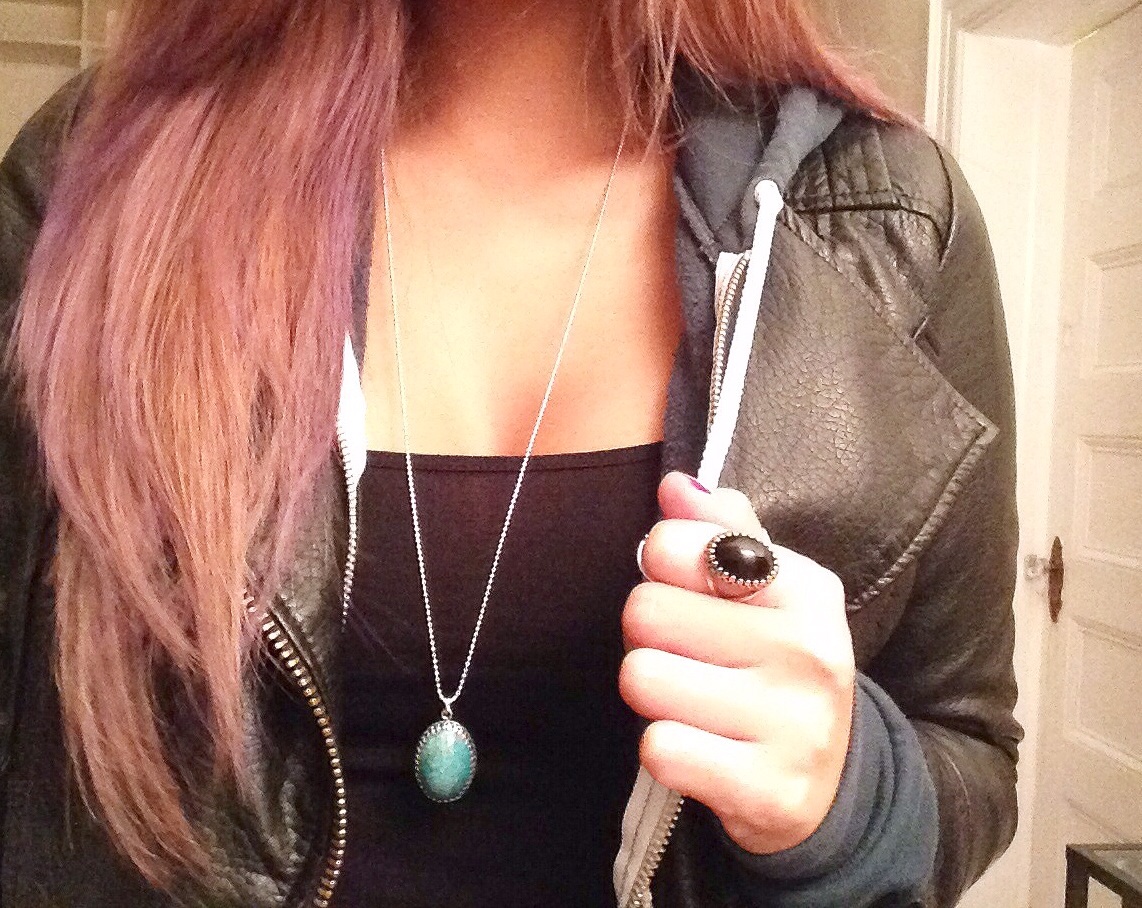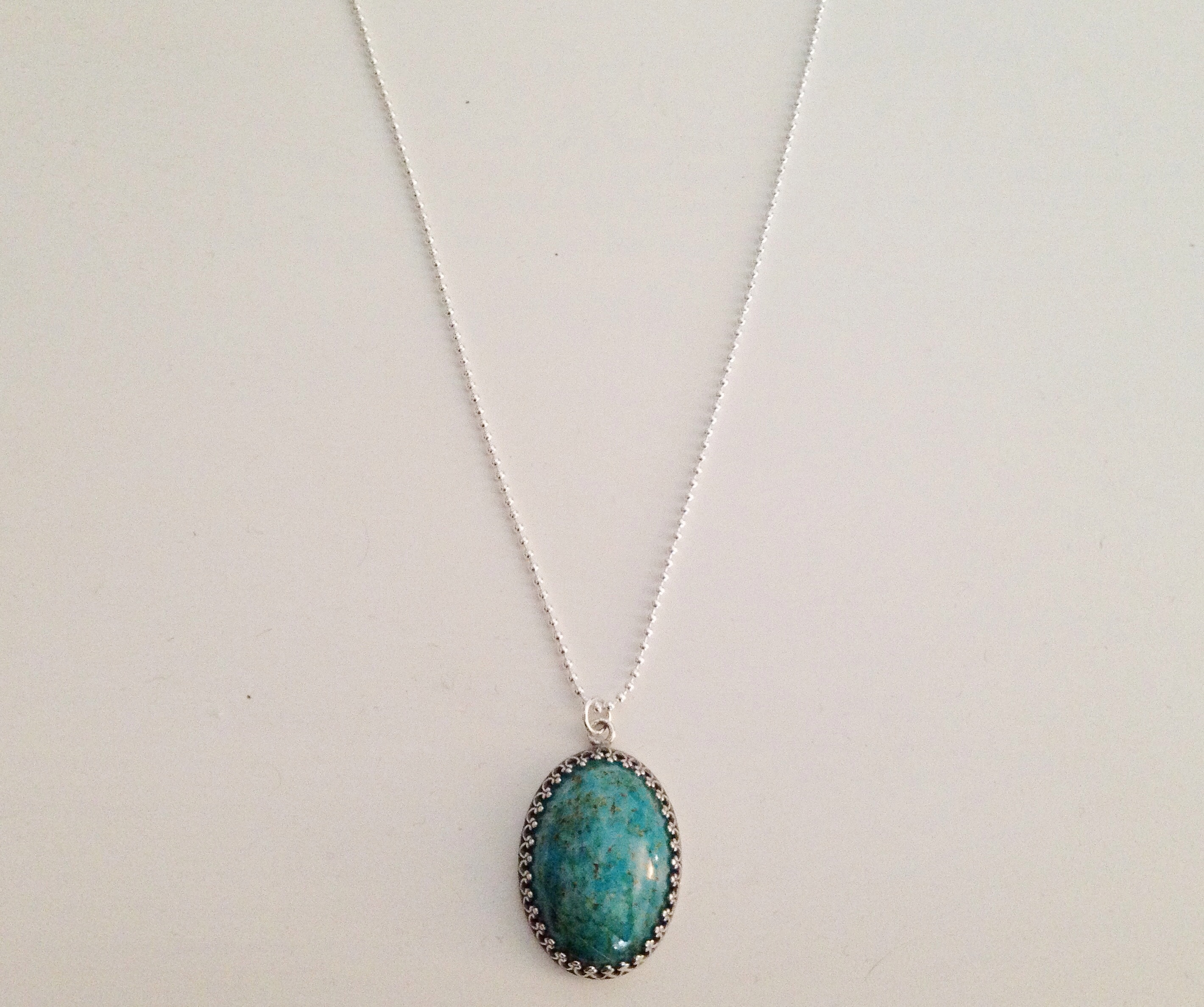 Teal matrix long chain pendant: • Large teal matrix stone • Available on 16" & 30" Chain • 925 Sterling Silver