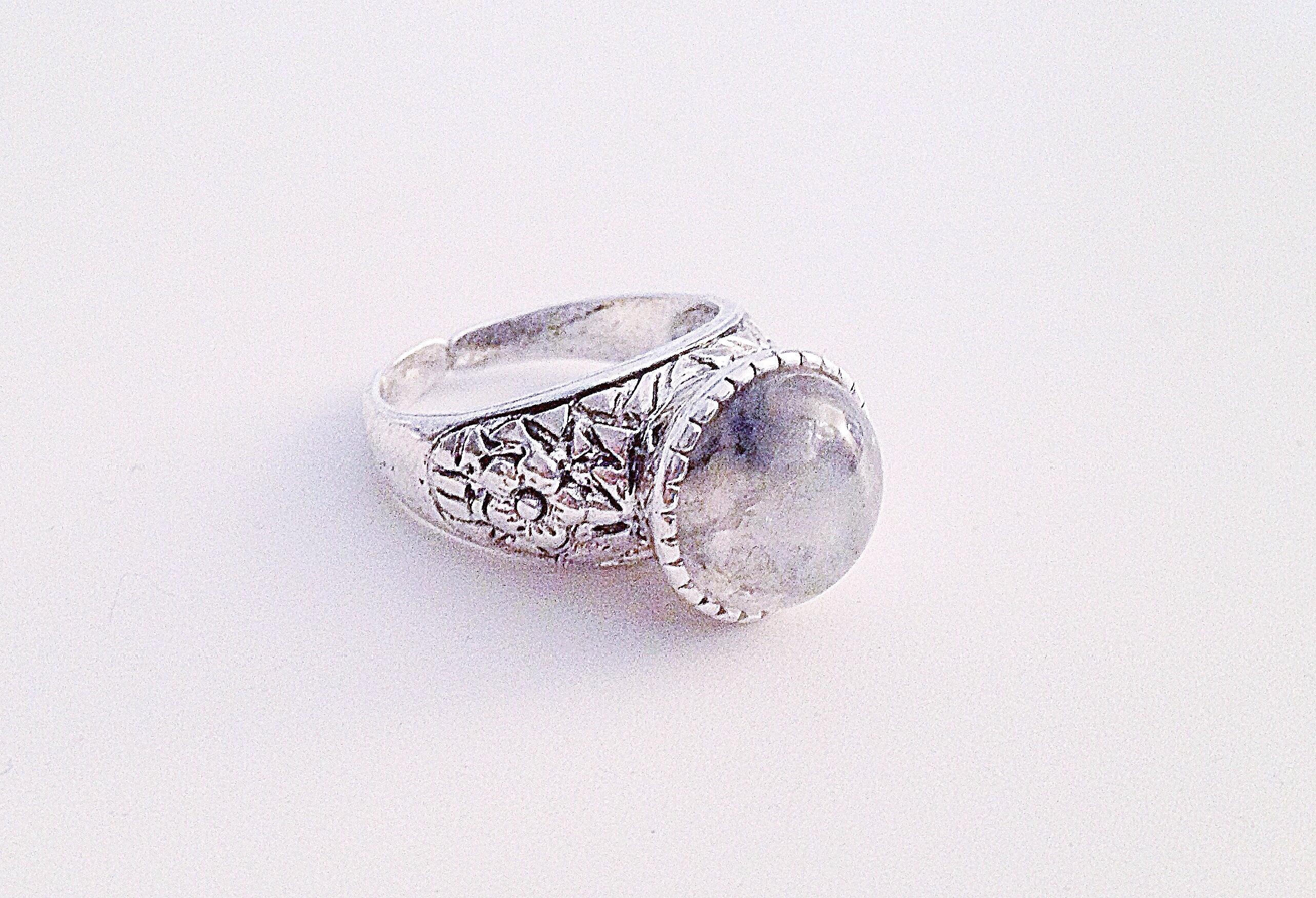 Vintage grey quartz antique flower ring. • Silver plated • Adjustable • Please keep in mind that each and every natural stone differ from one another. No two stones are alike.
