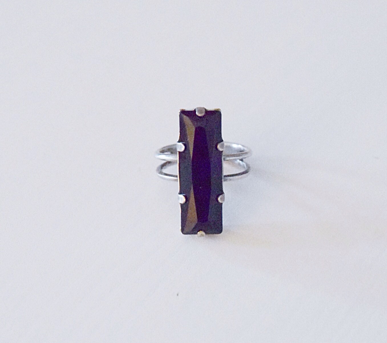 Vintage jet black swarovski crystal ring: • Genuine swarovski crystal • Adjustable band • Antique silver plated