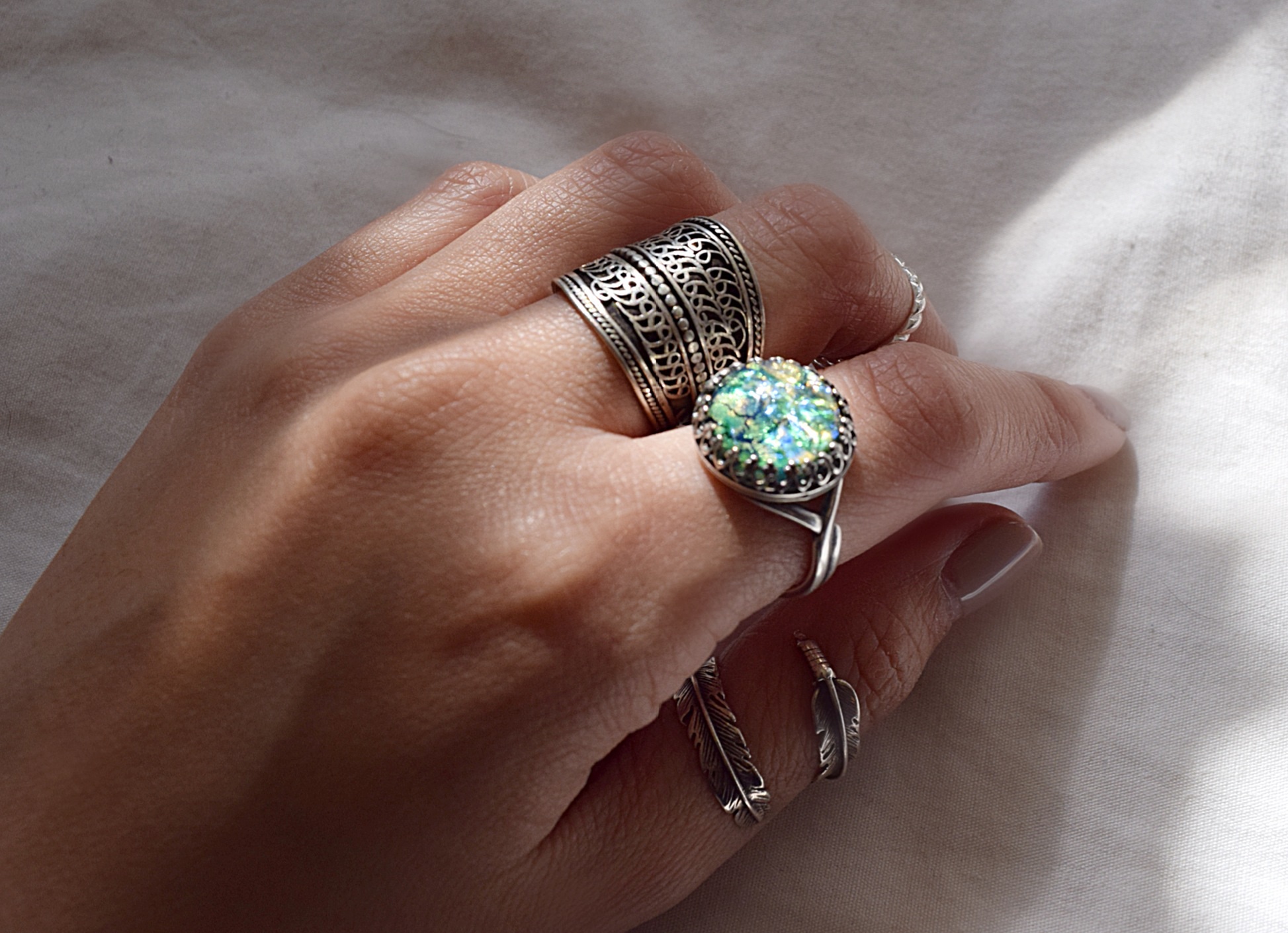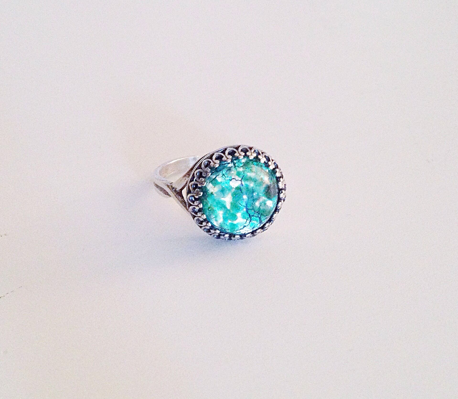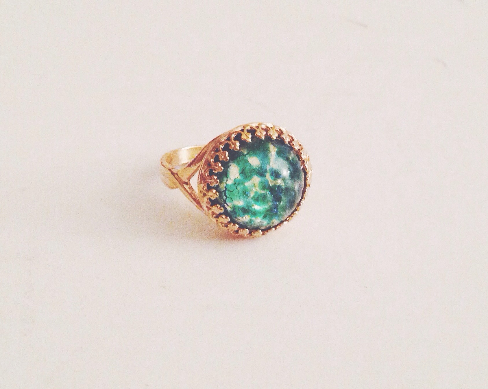 Vintage round green opal ring. • adjustable band • available in gold and silver plated • stone measures 1.4cmx1.4cm