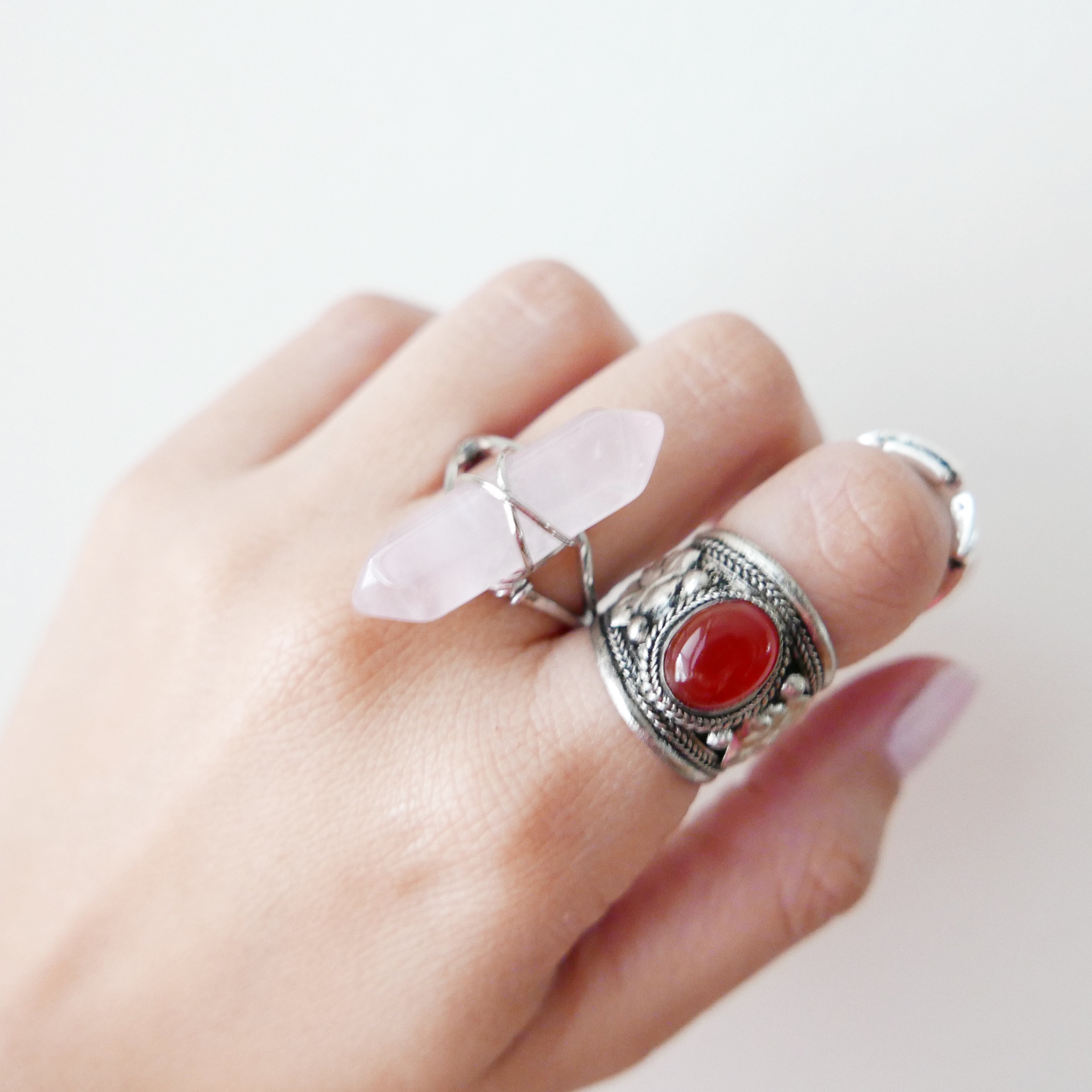 Pointed quartz ring: • adjustable band • silver plated • available in natural amethyst, opalite & turquoise