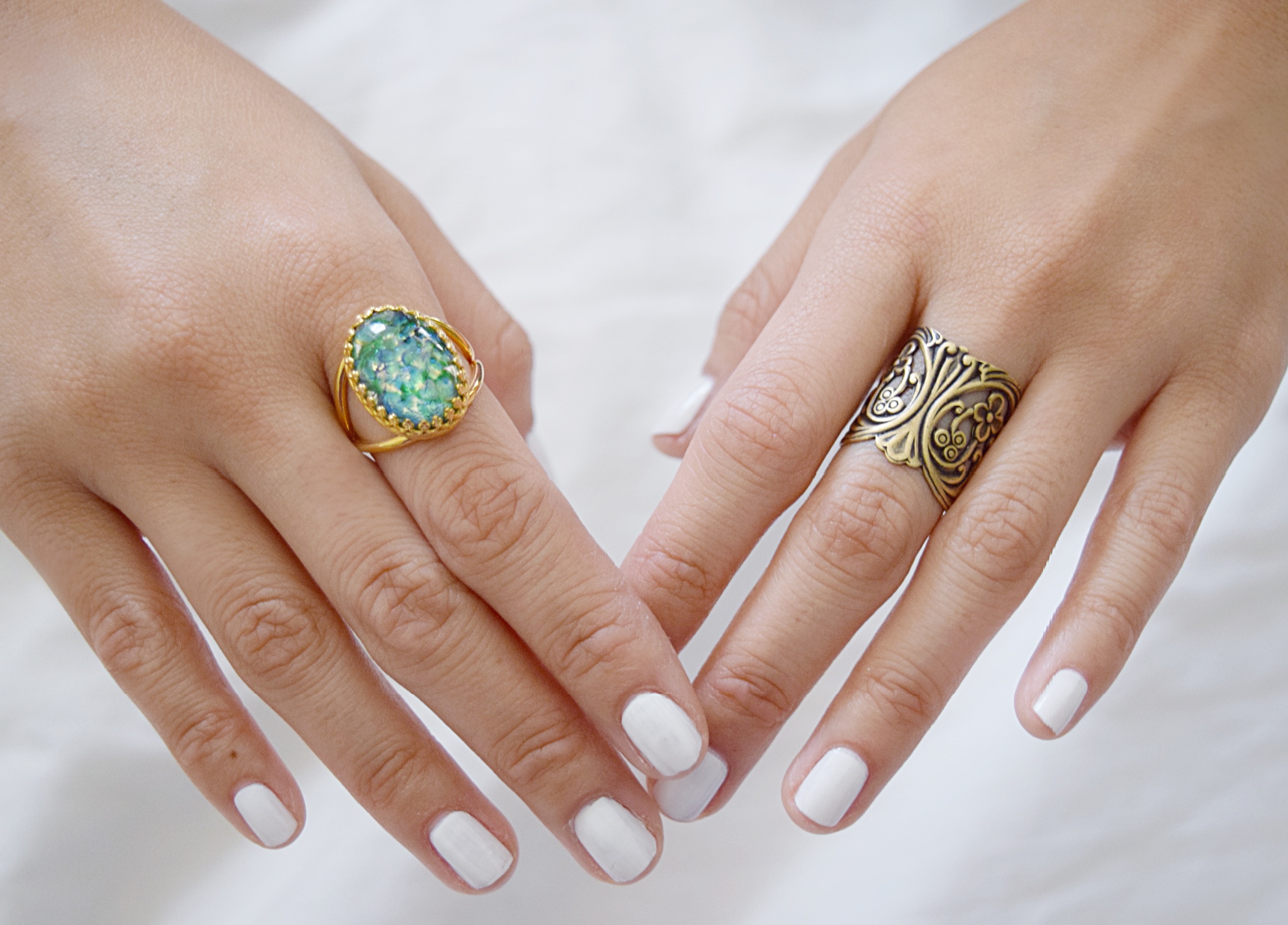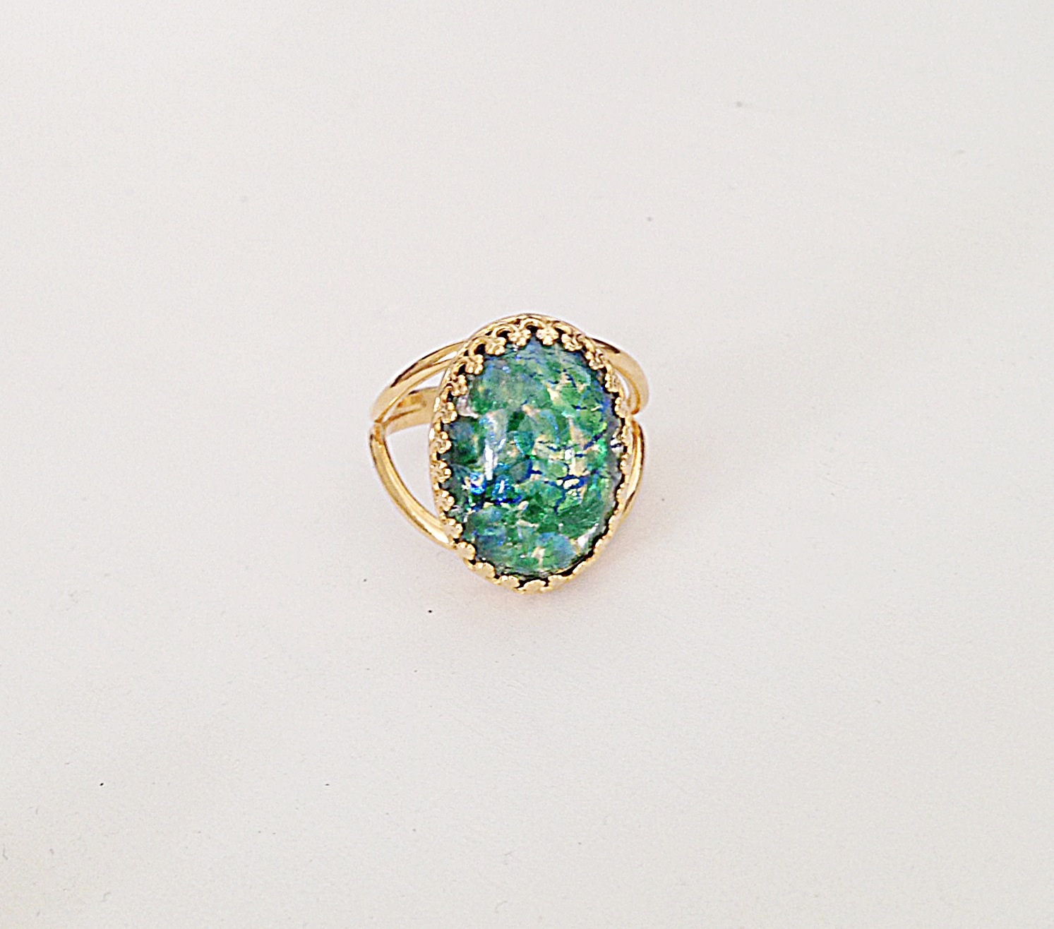 The "Lily" Ring: Vintage green opal set in an adjustable silver plated/gold plated/sterling silver ring. Stone measures 1.8cmx1.3cm