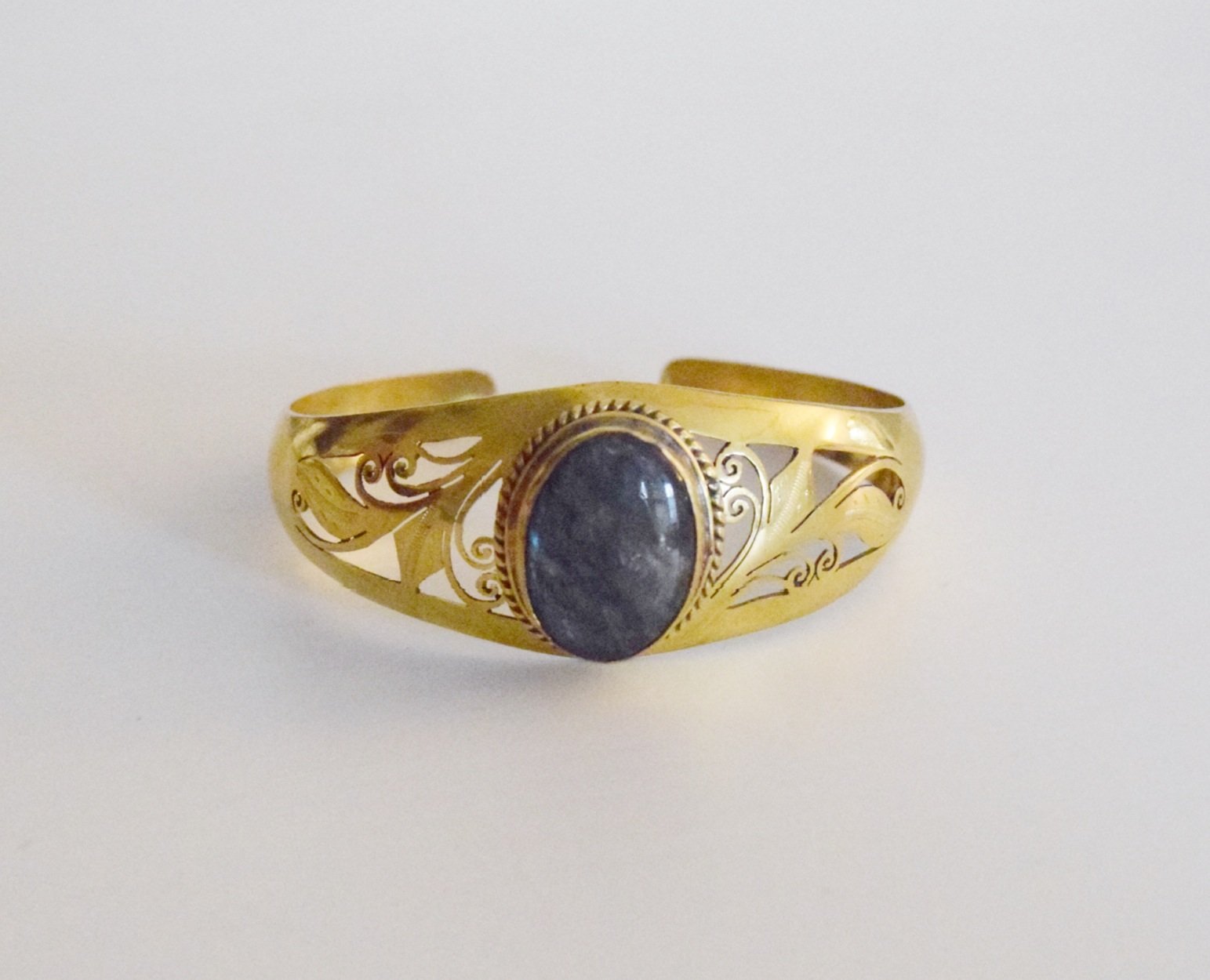 Vintage moonstone bangle: • antique gold plated • genuine gemstone