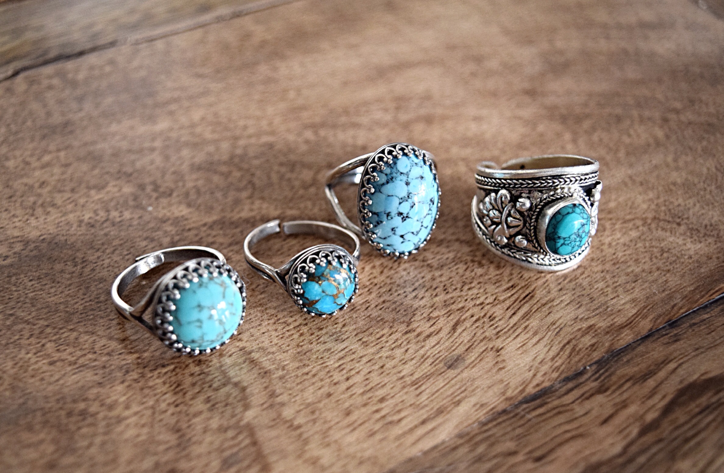 Vintage round teal matrix ring • available in silver plated, 925 sterling silver & gold plated • adjustable band