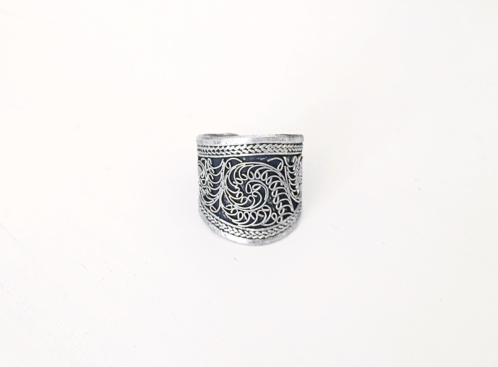 Vintage twisty pattern Tibetan cuff ring • adjustable band • type of metal: copper alloy/Tibetan silver