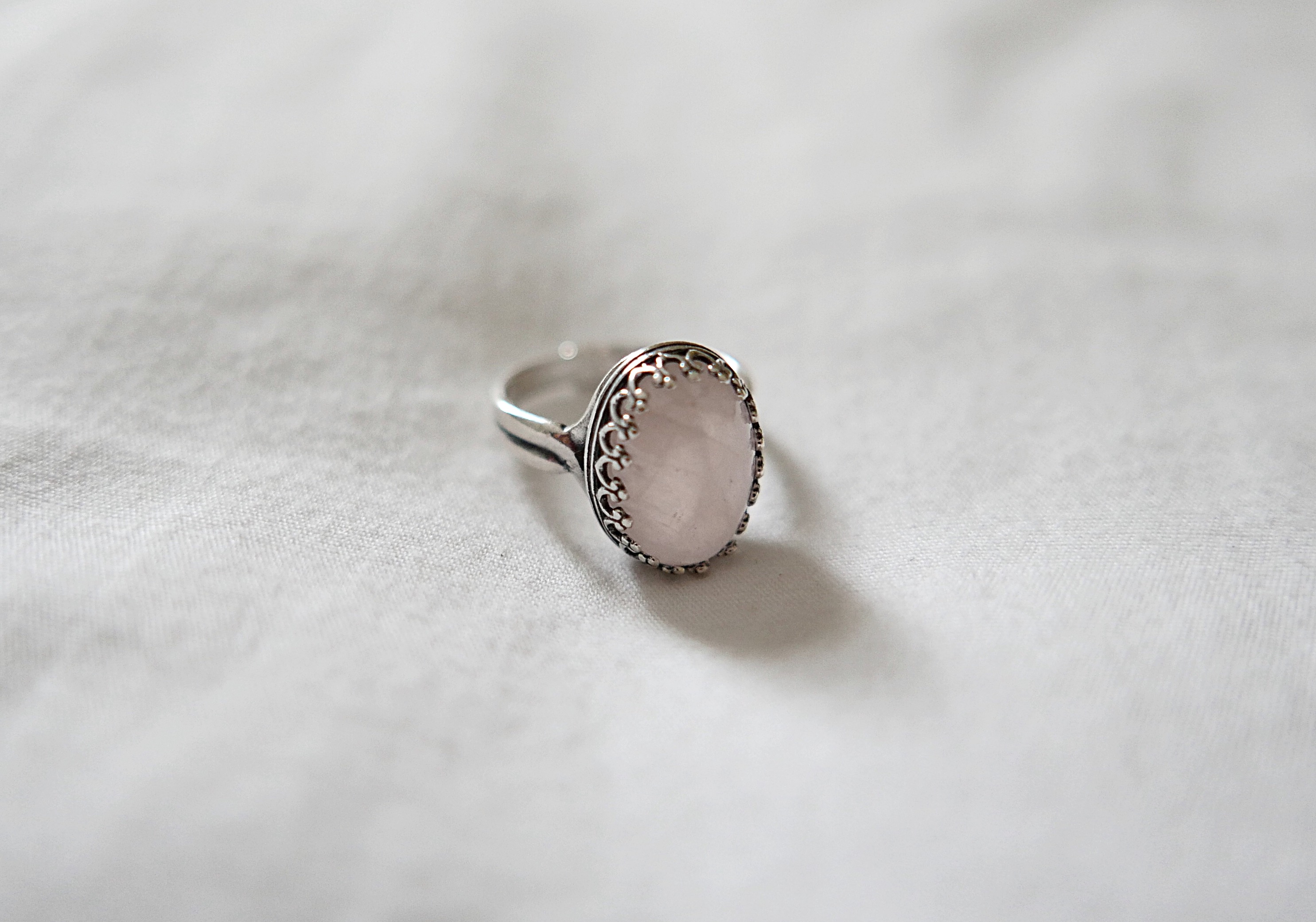 Small oval rose quartz ring • size measures 10x14mm • adjustable band • natural rose quartz