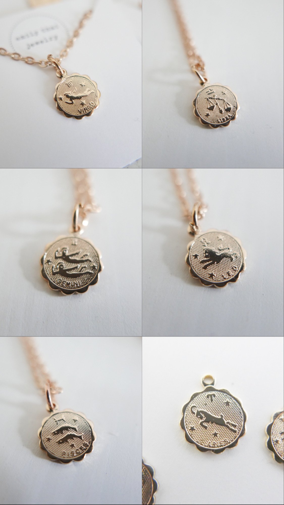 Dainty zodiac necklaces come in gold plated.