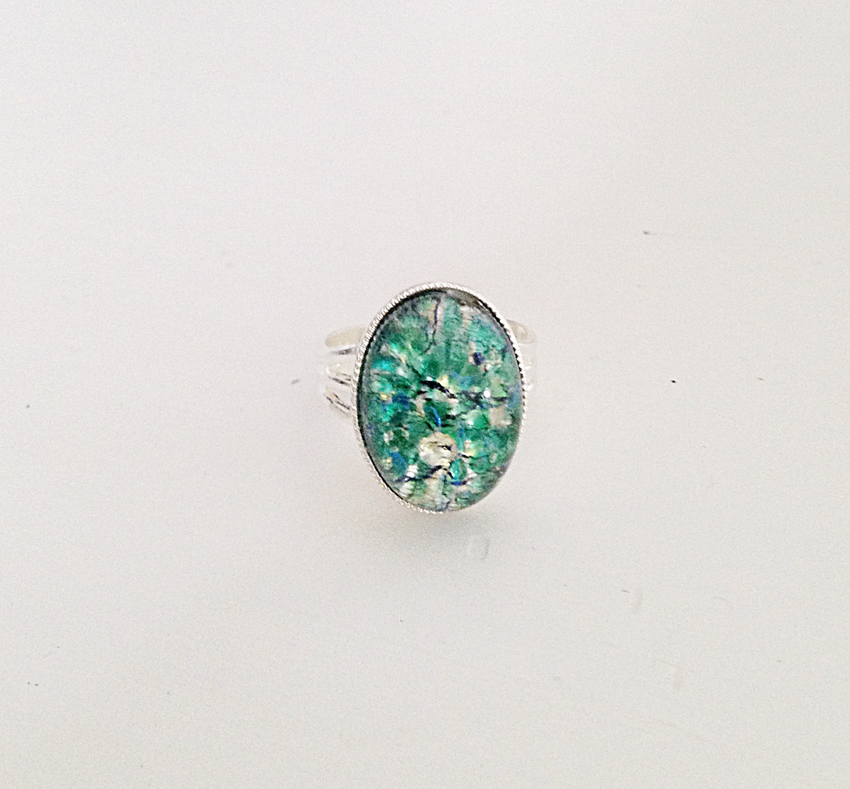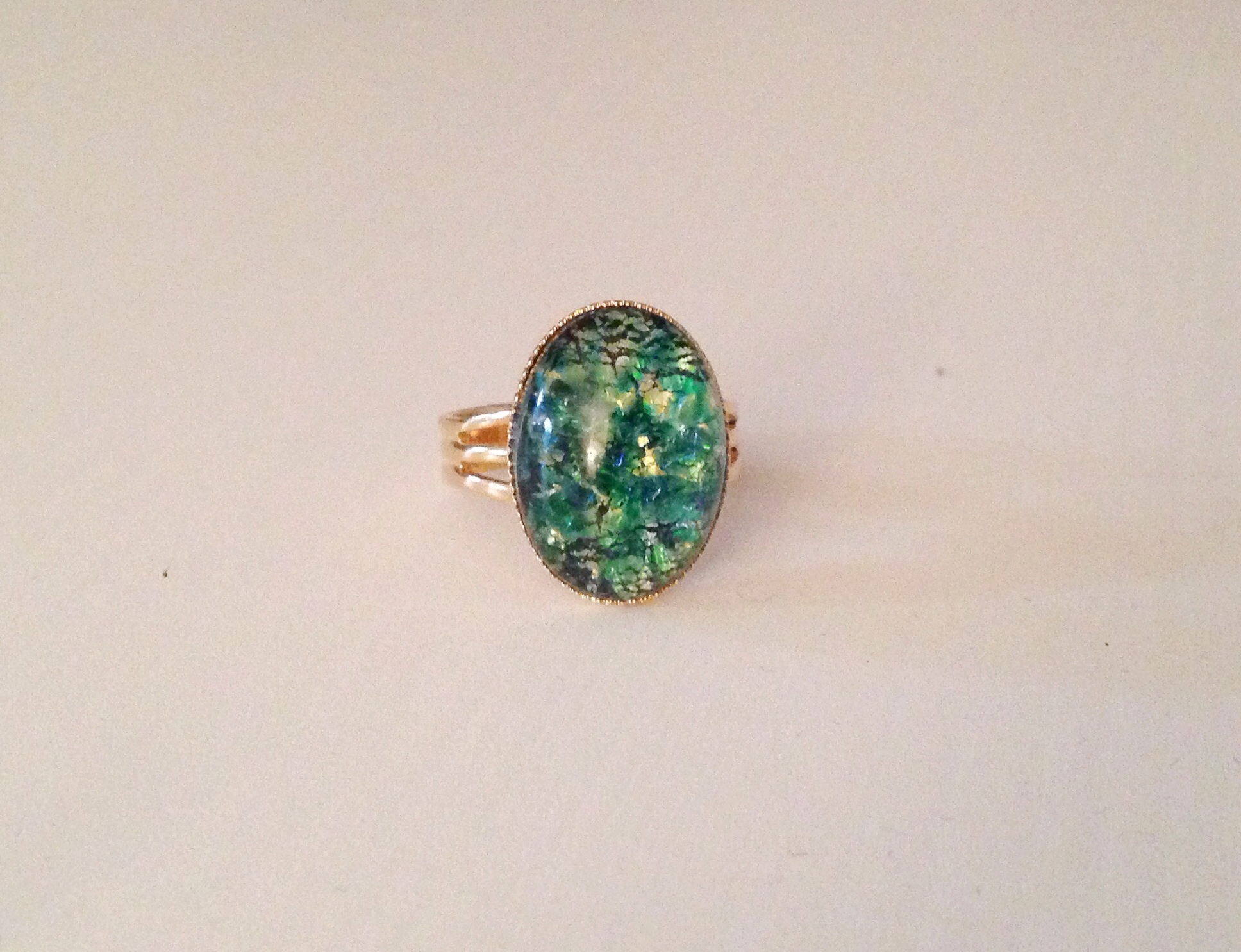 The "Stefani" ring: • Vintage green opal • This stone has royal blue and green colours throughout • Adjustable band • One of my most popular rings!