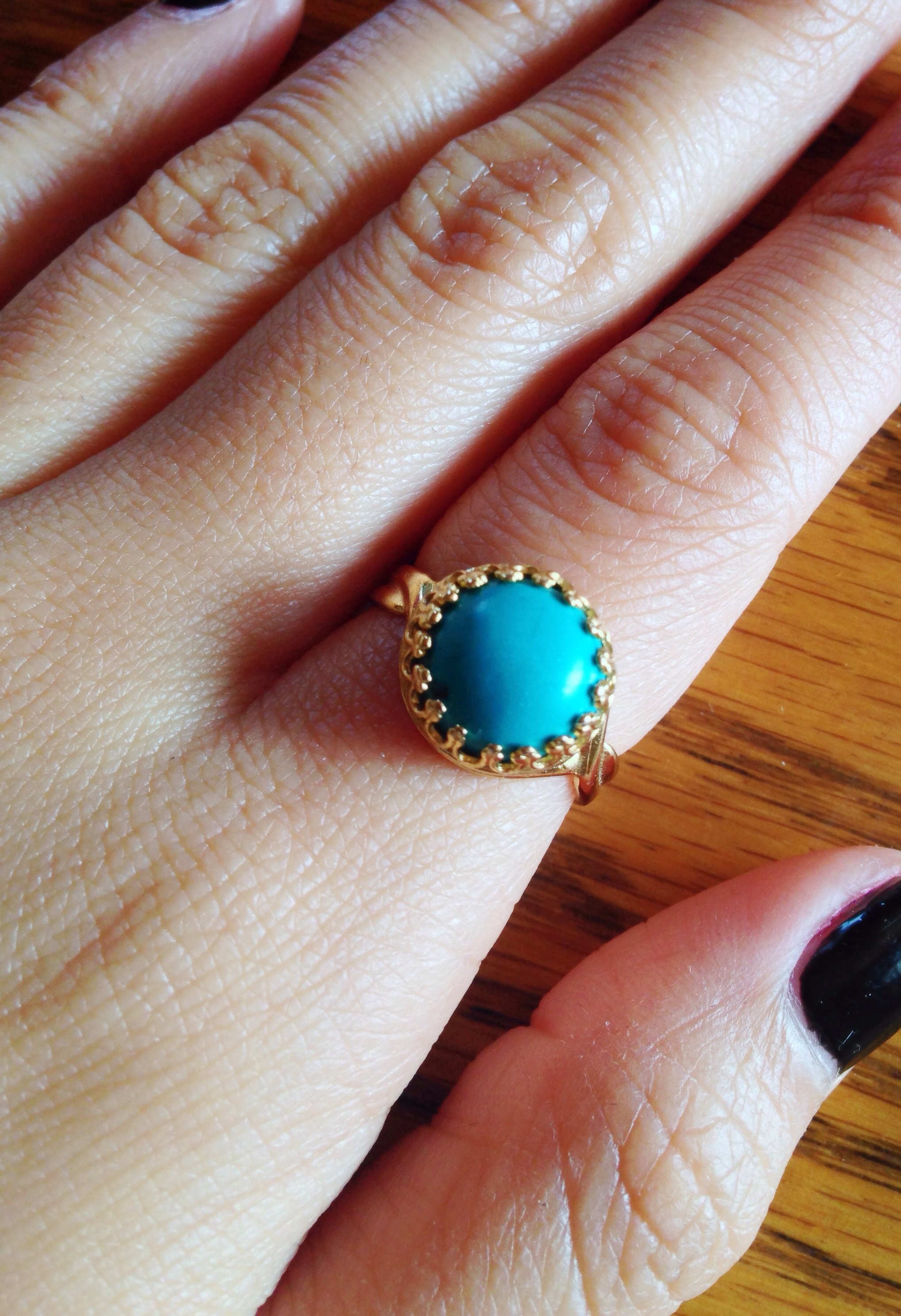 The "Taylor" ring. Vintage matte finish turquoise stone ring. Available in silver plated, gold plated & sterling silver. • Adjustable band