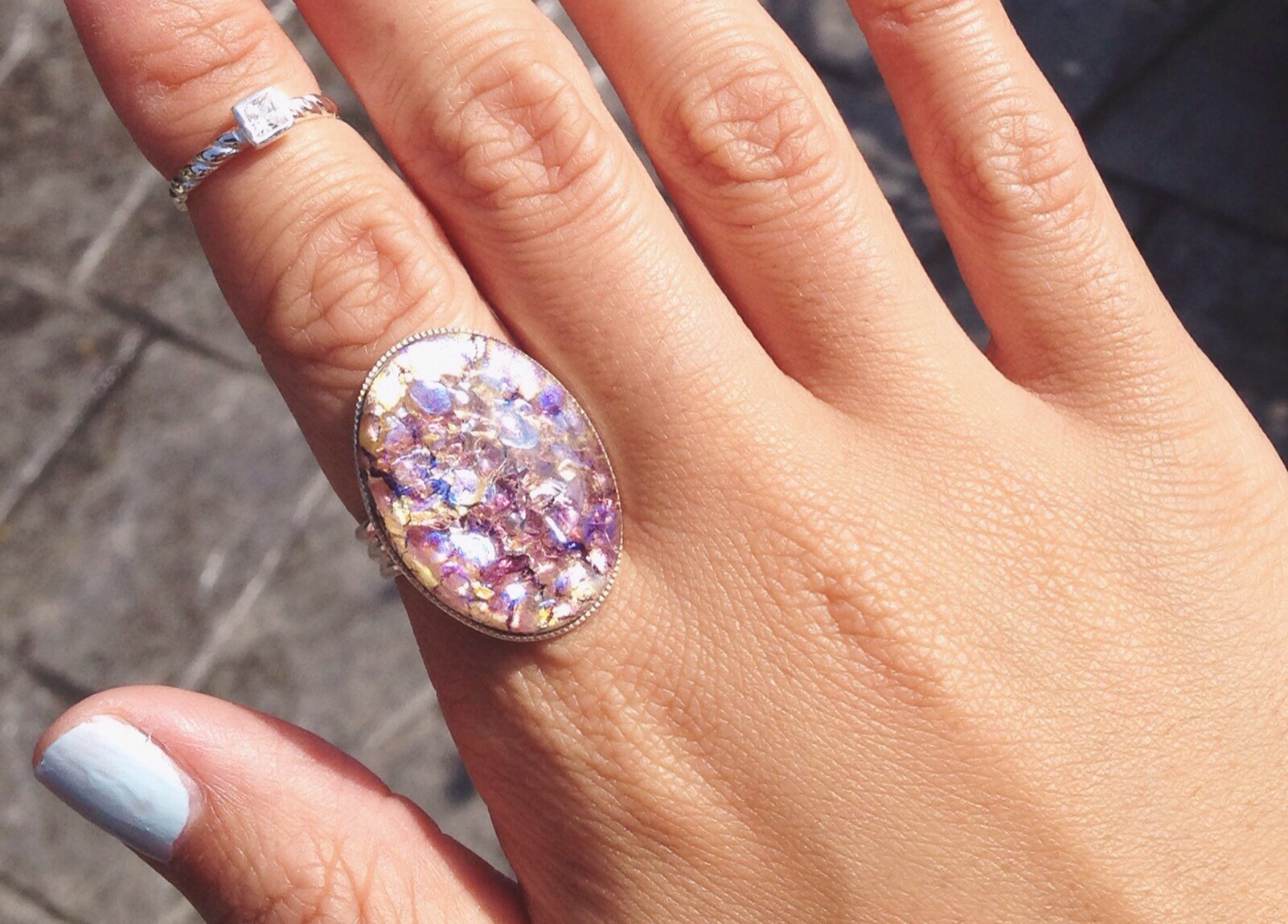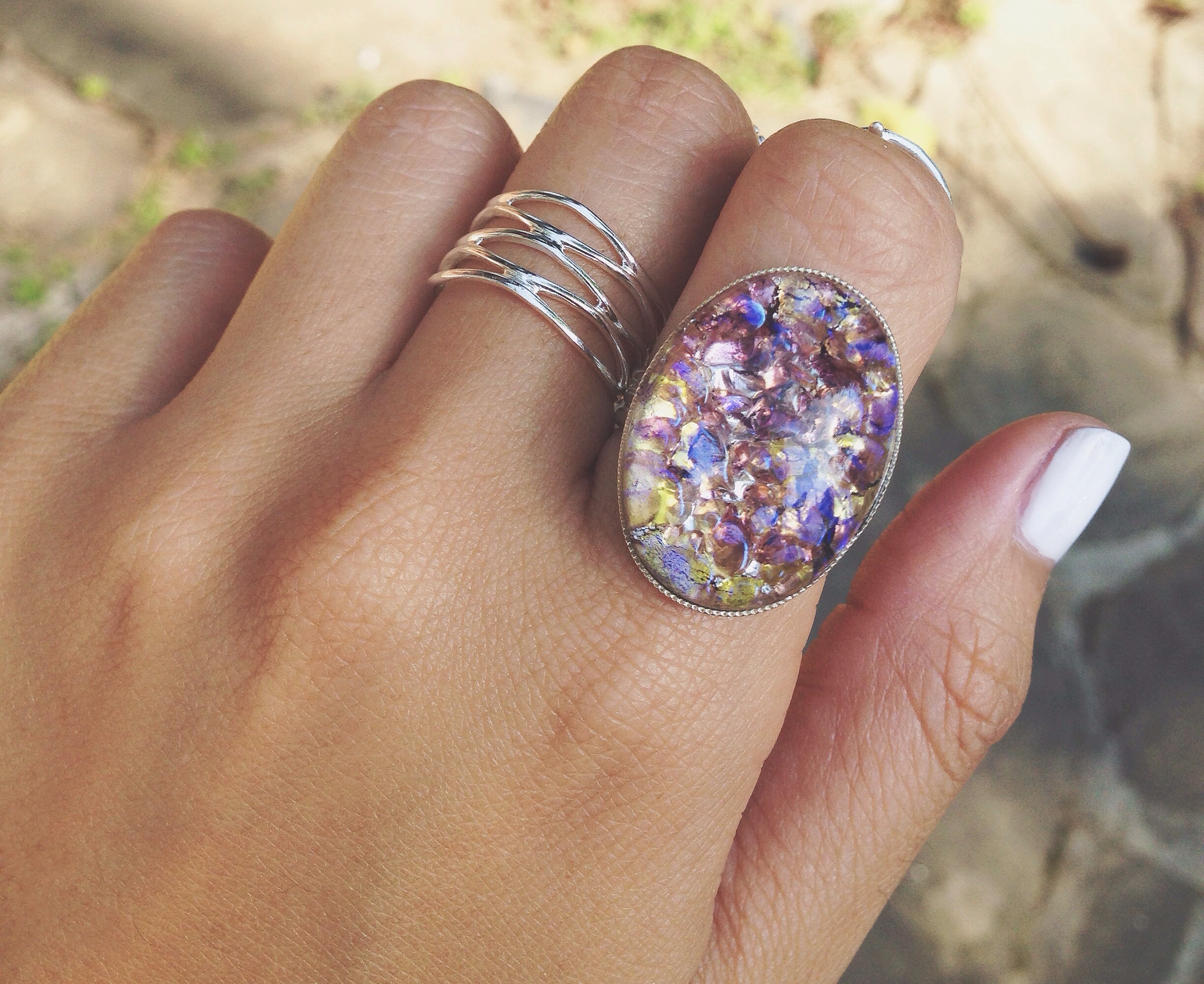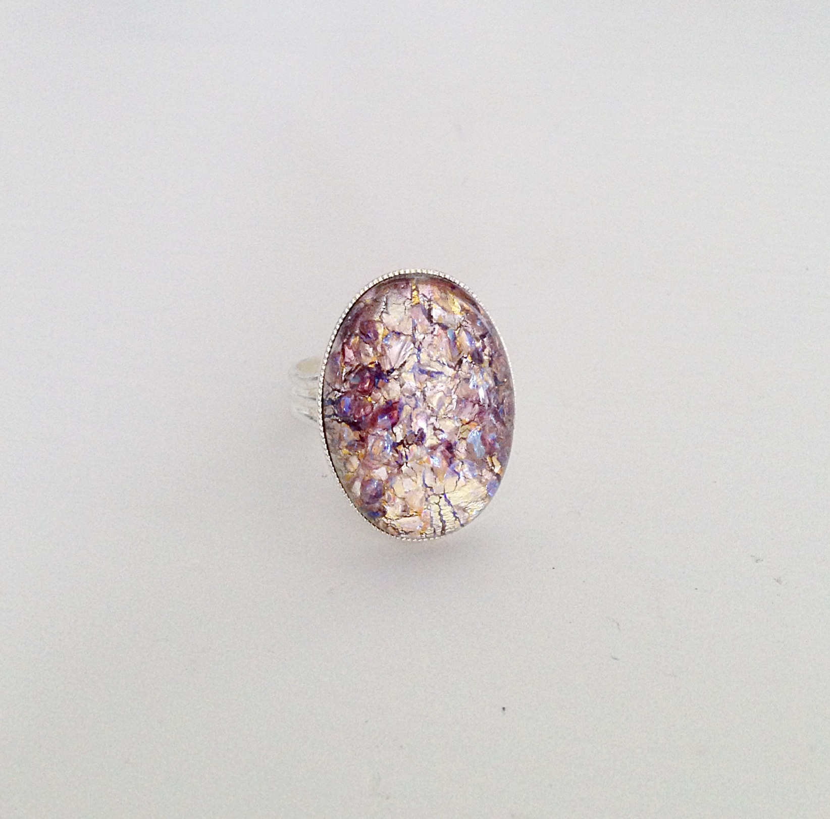 Vintage large light amethyst opal stone. This opal is very unique with flecks of amber and amethyst in it. Definitely a "statement" jewelry piece!