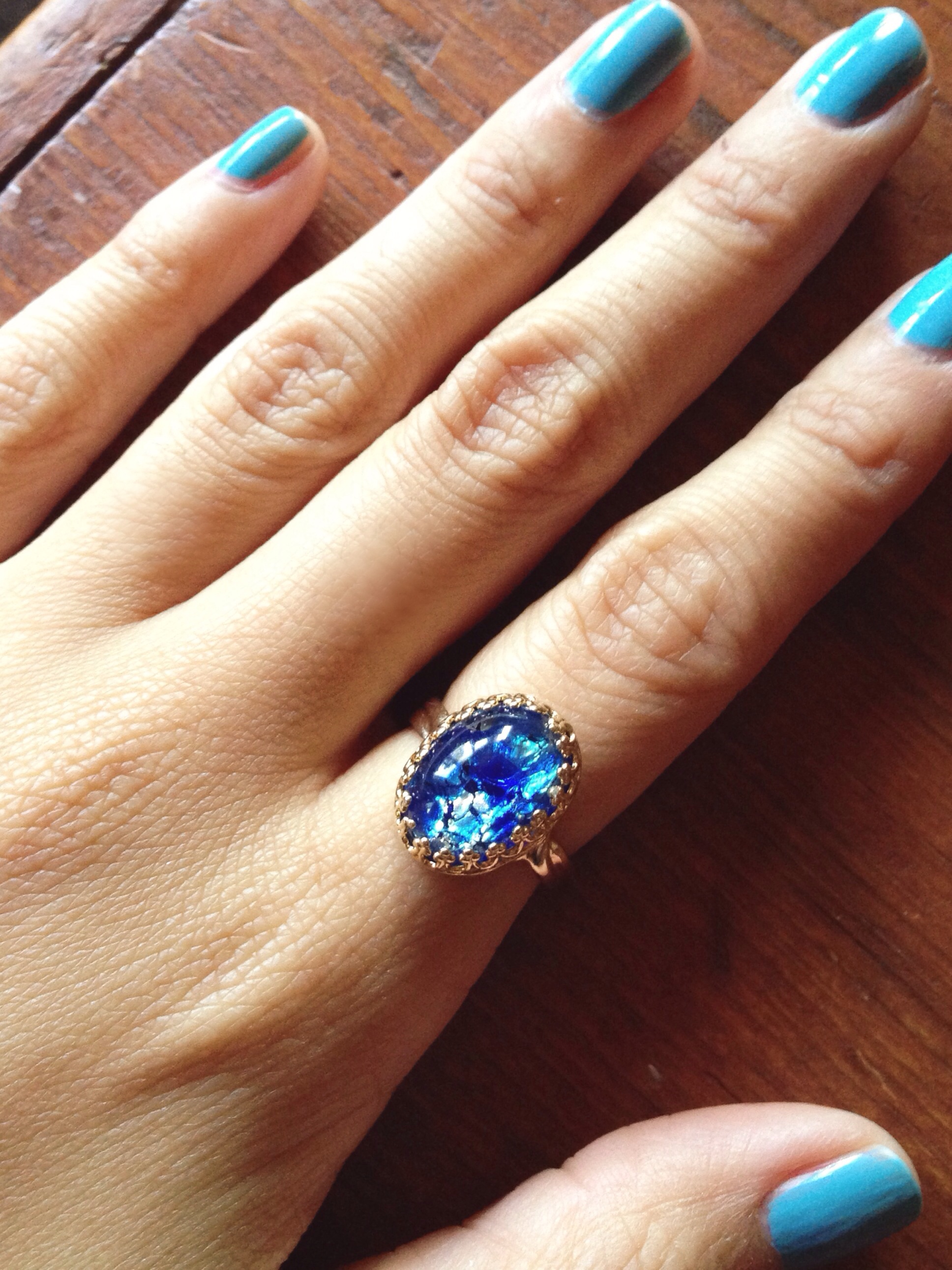 "Carly" Cobalt blue opal ring: • Adjustable band • Available in Silver Plated, Gold Plated & 925 sterling silver