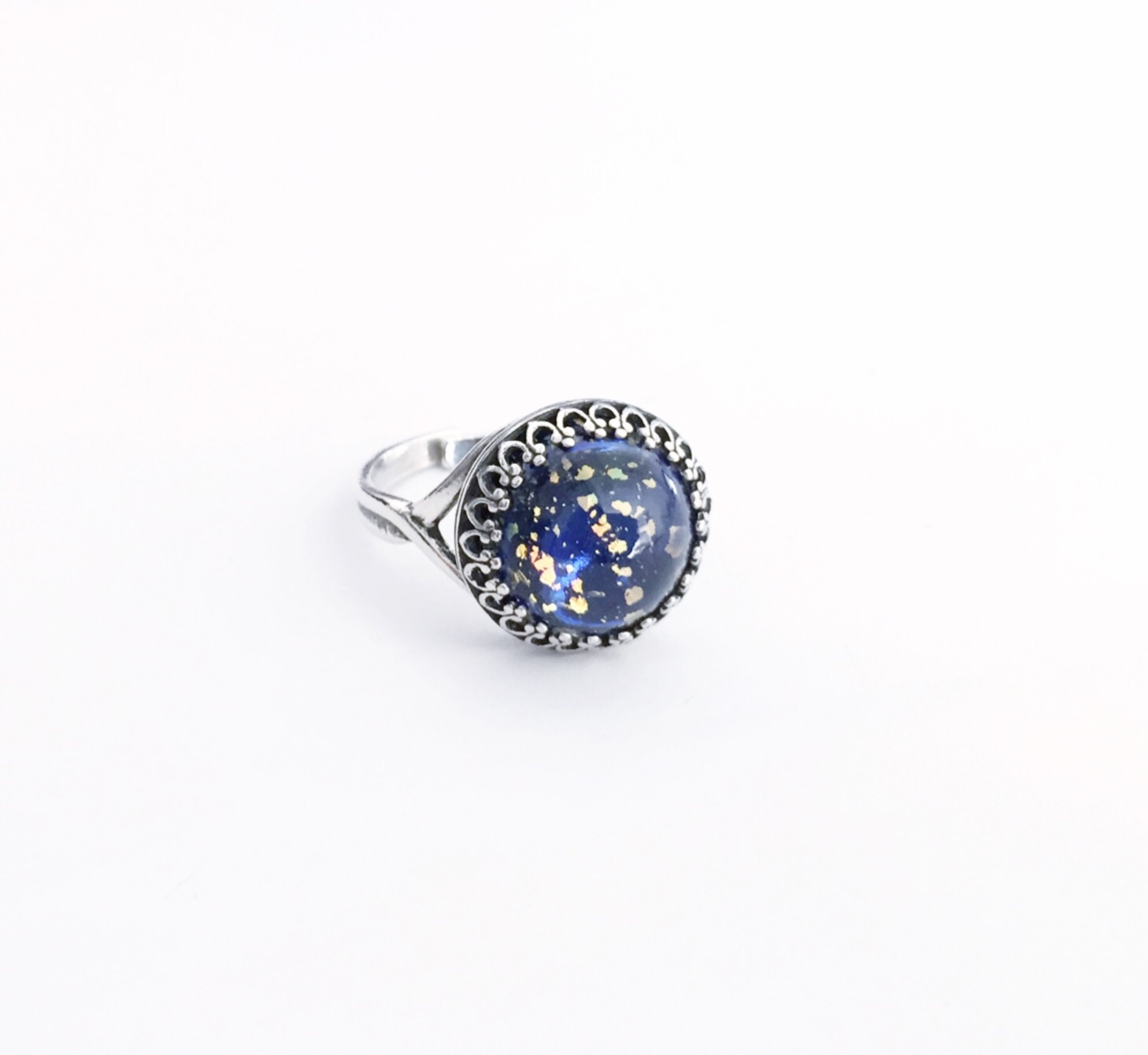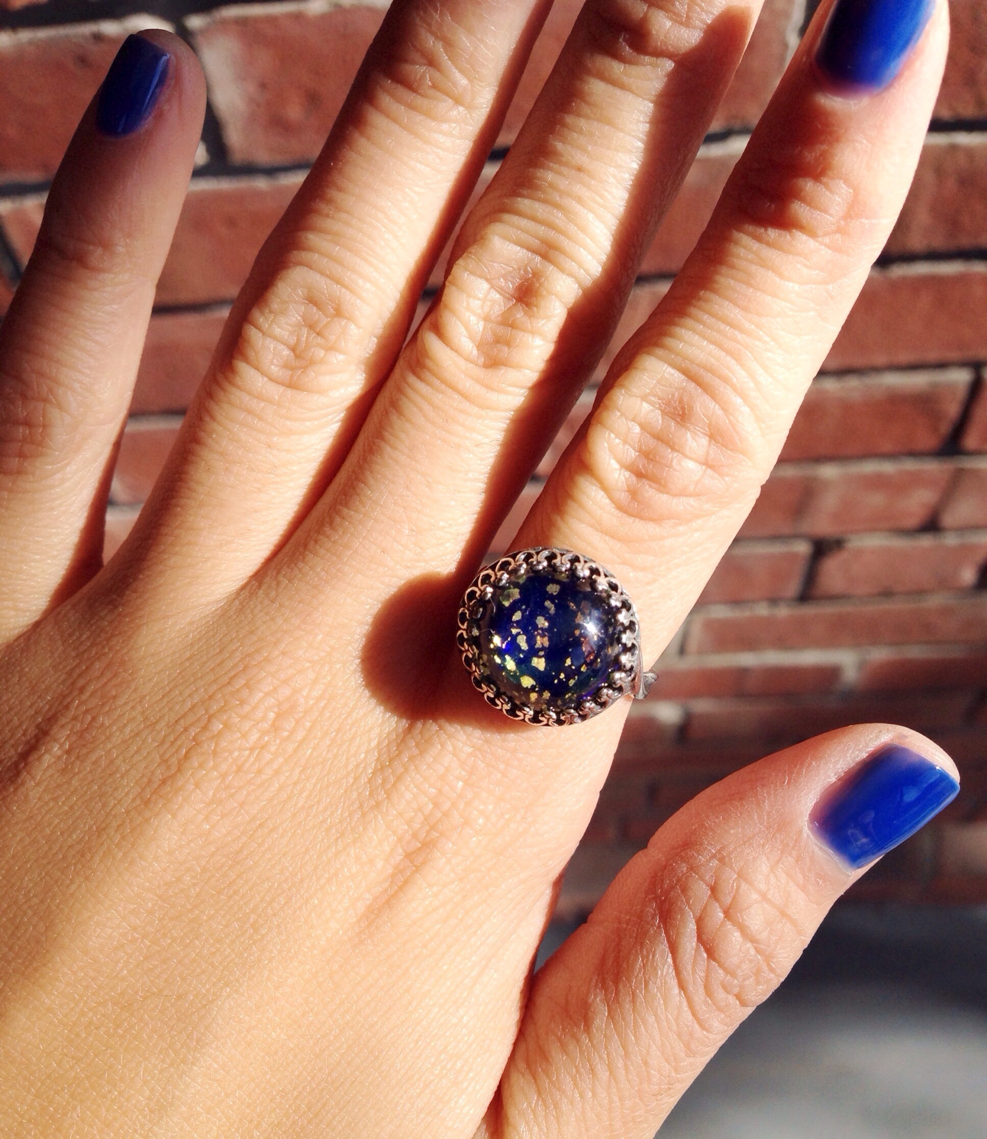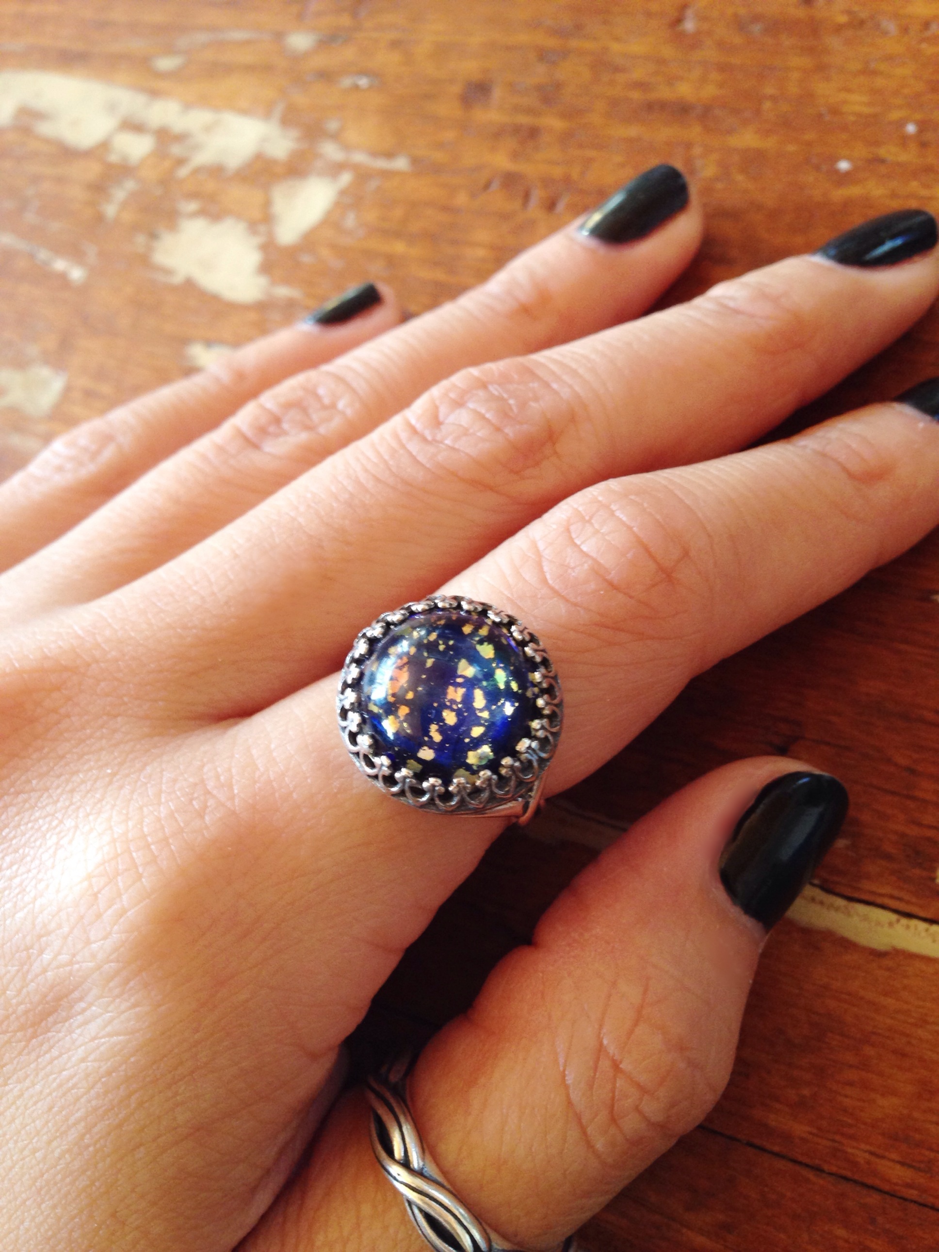 Vintage Black fire opal "Wanderlust" ring. • 14mm • Adjustable • Available in antique silver plated/gold plated and sterling silver