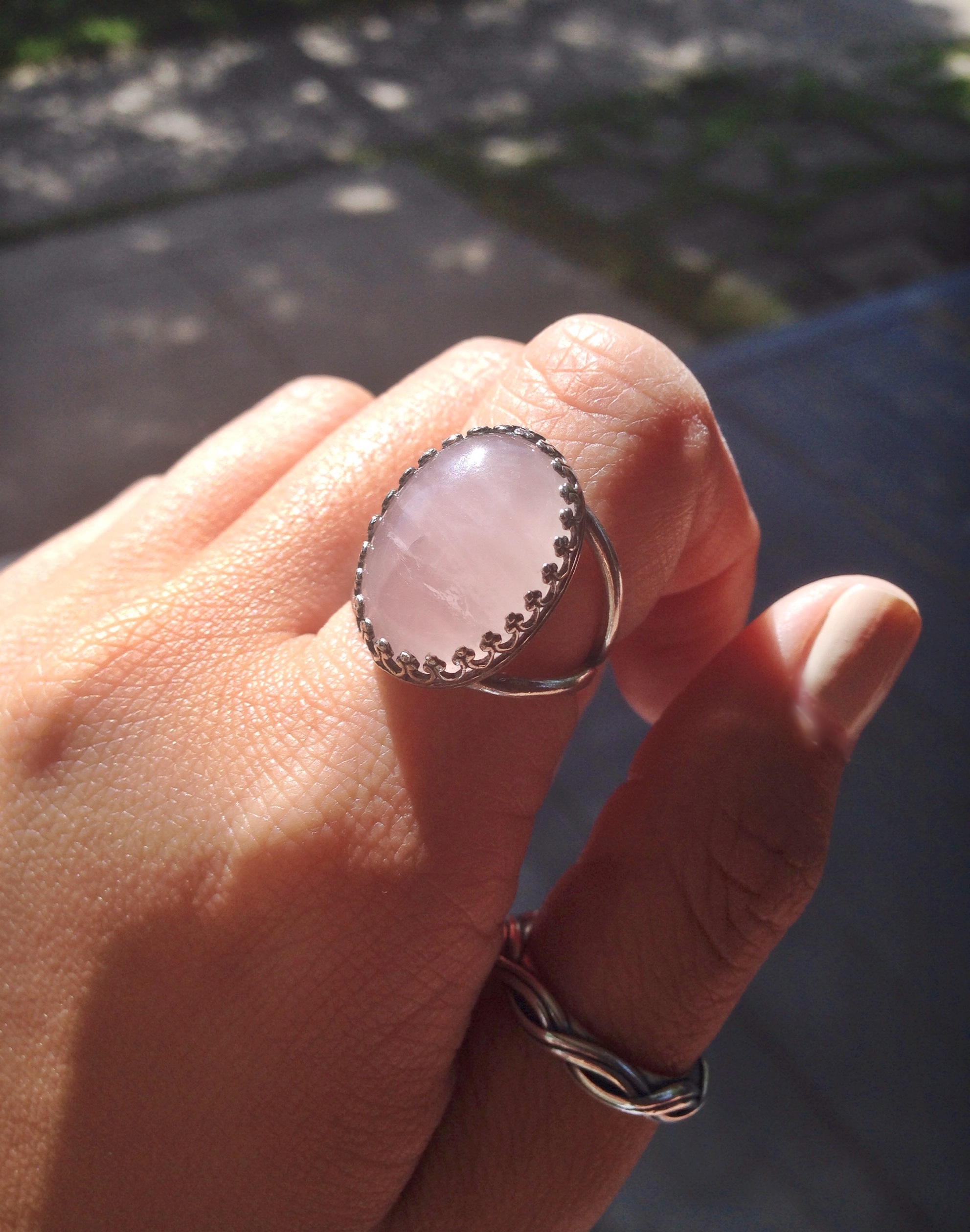 Genuine rose quartz ring. • Adjustable • Available in SIlver Plated, Gold Plated & Antique 925 sterling silver