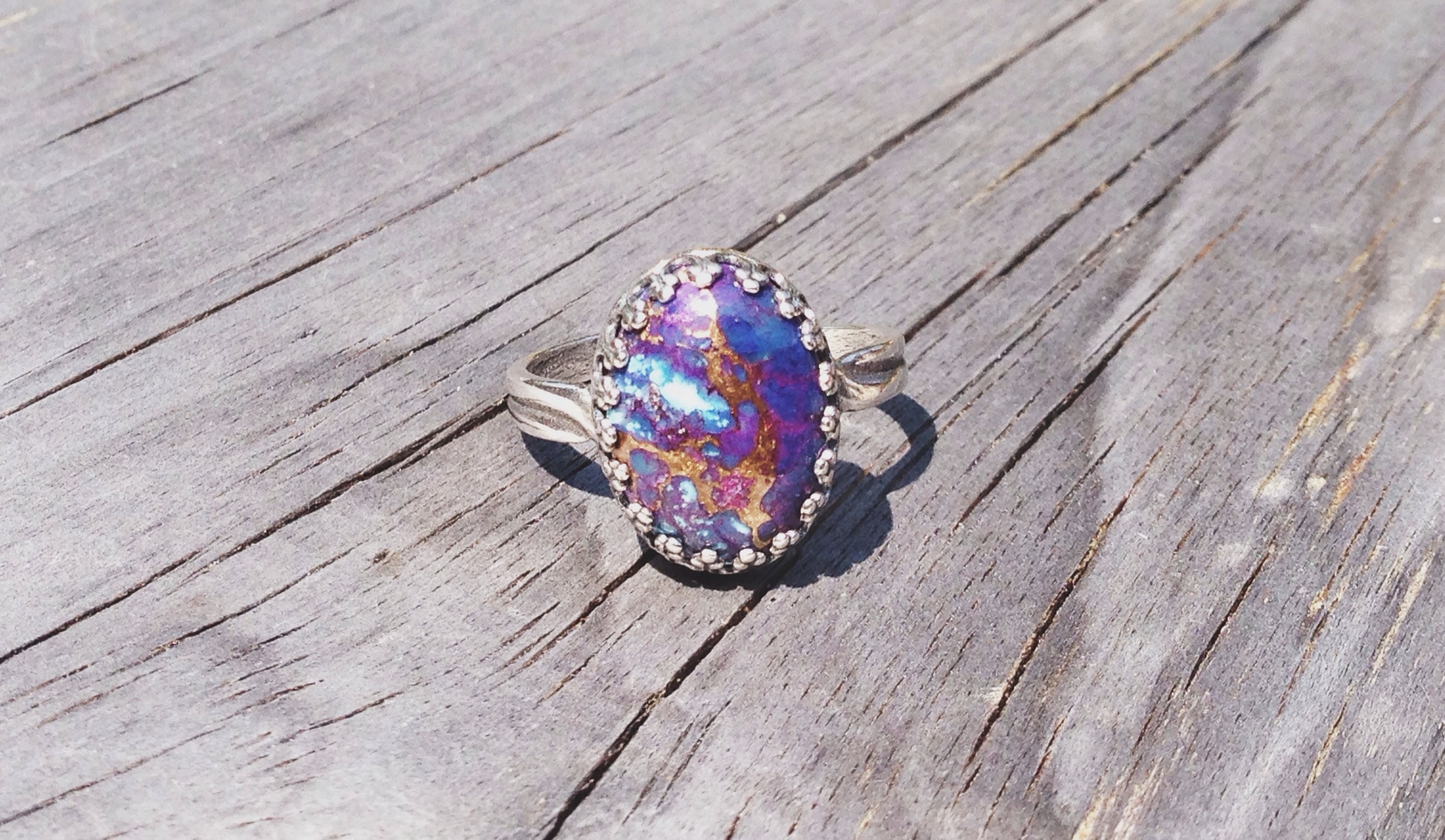 Vintage purple turquoise natural stone ring • genuine gemstone • adjustable ring band • available in silver plated, gold plated & 925 sterling silver