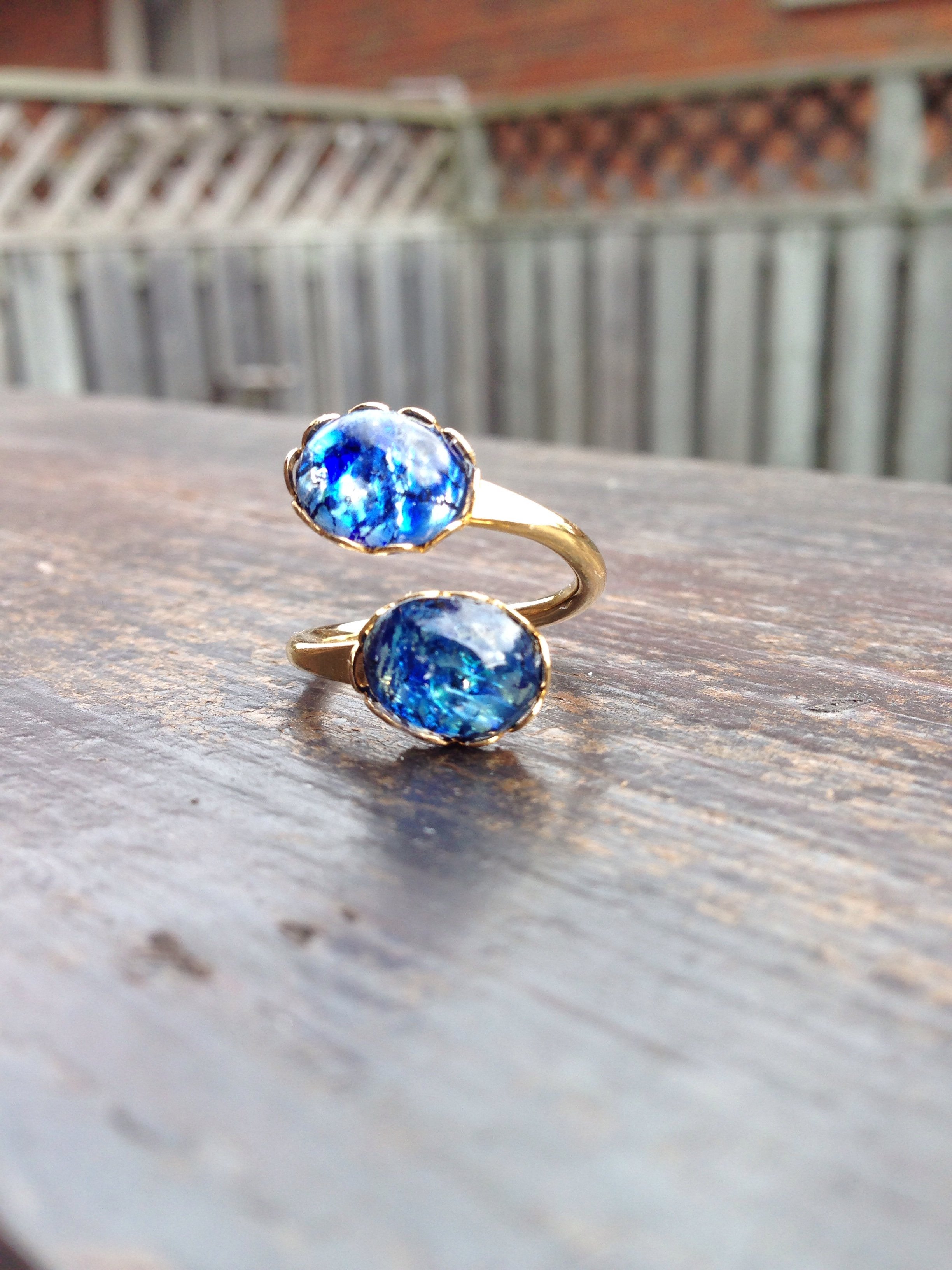 Vintage cobalt blue opal wraparound ring in gold plated. • Non adjustable • Fits like a size US 5/5.5