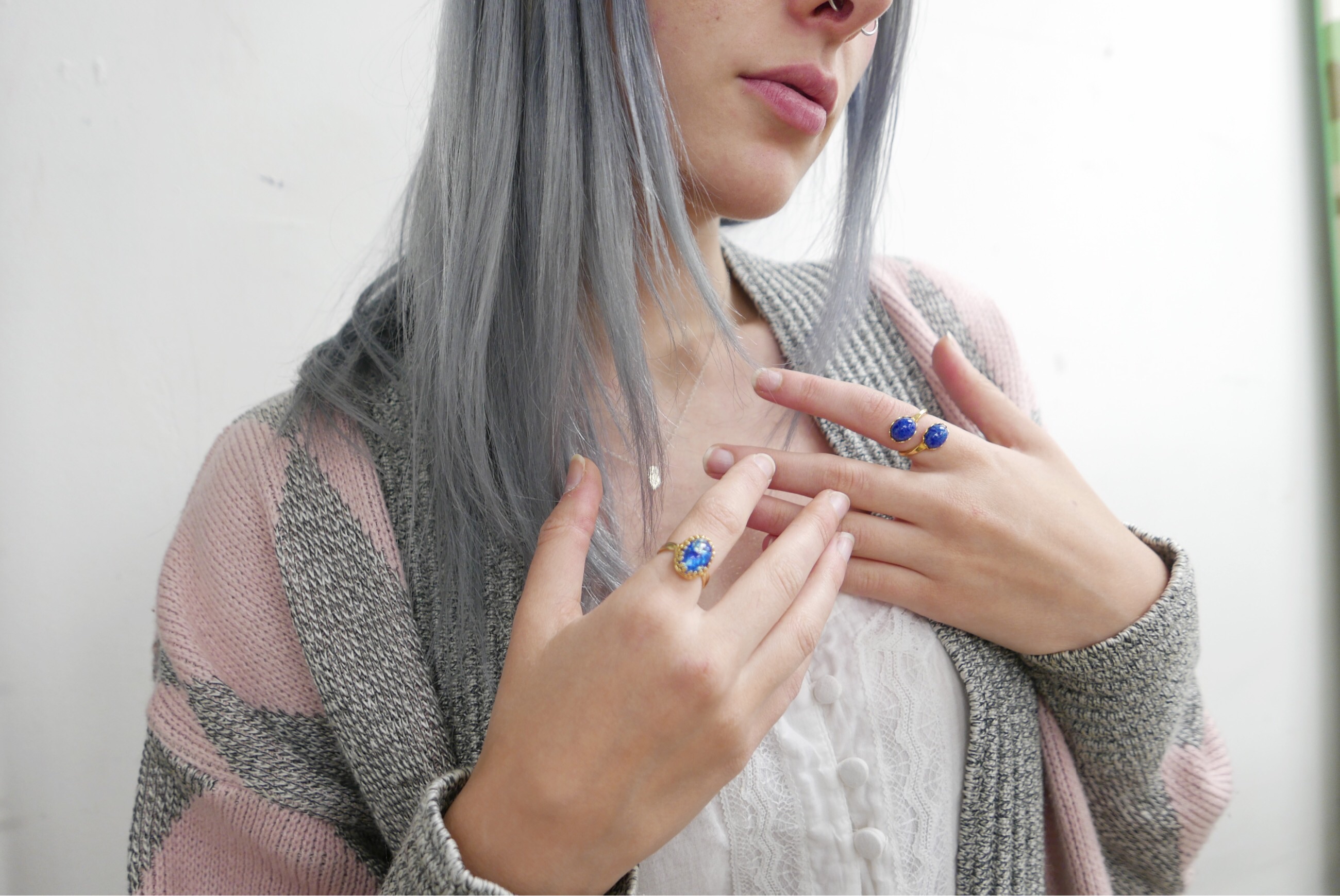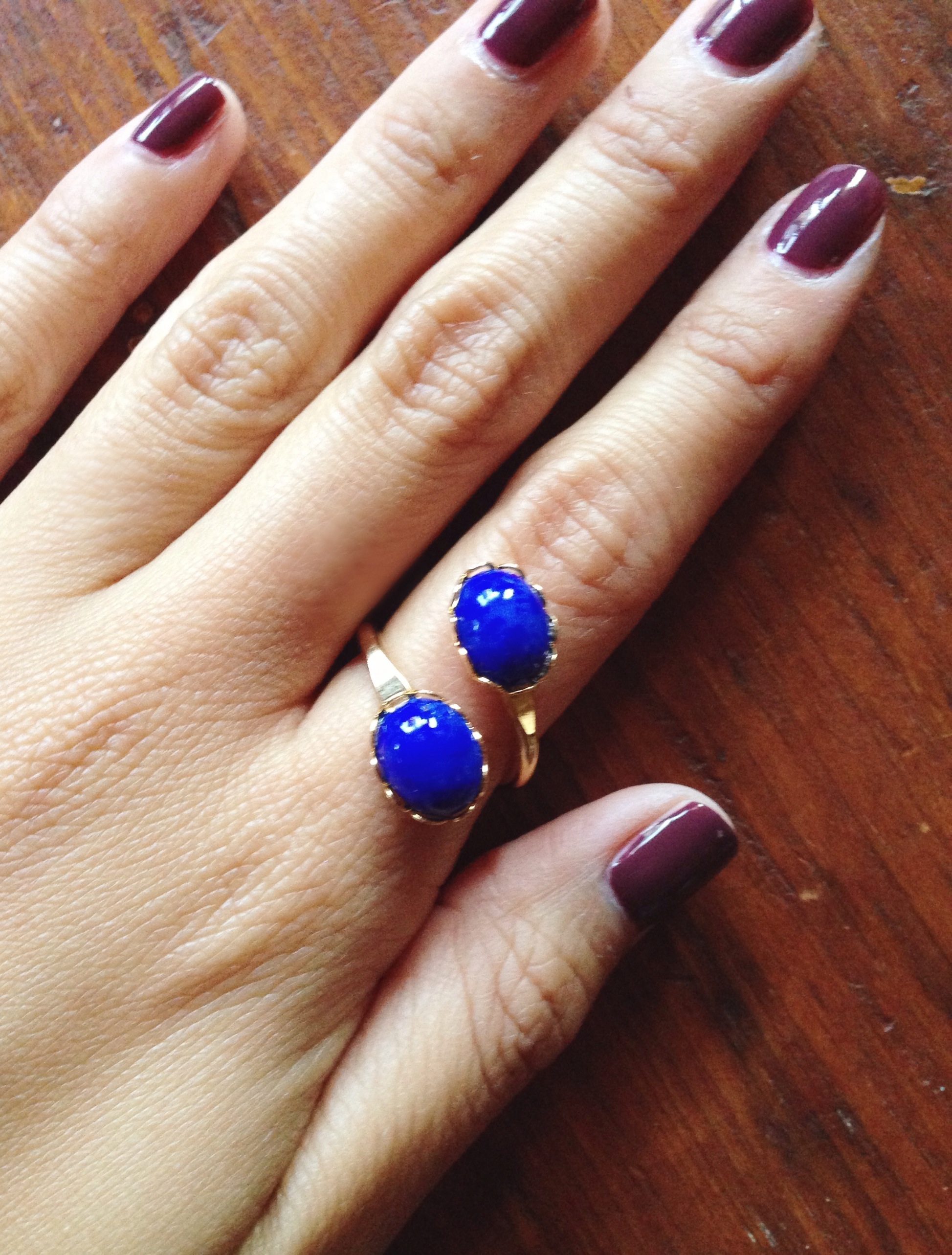 Vintage royal blue stone wraparound ring. • Available in Turquoise, Light turquoise, Cobalt blue opal and Black Onyx (see other listings.) • Gold plated • Fits like a size US 5/5.5